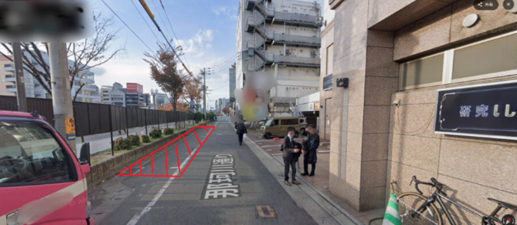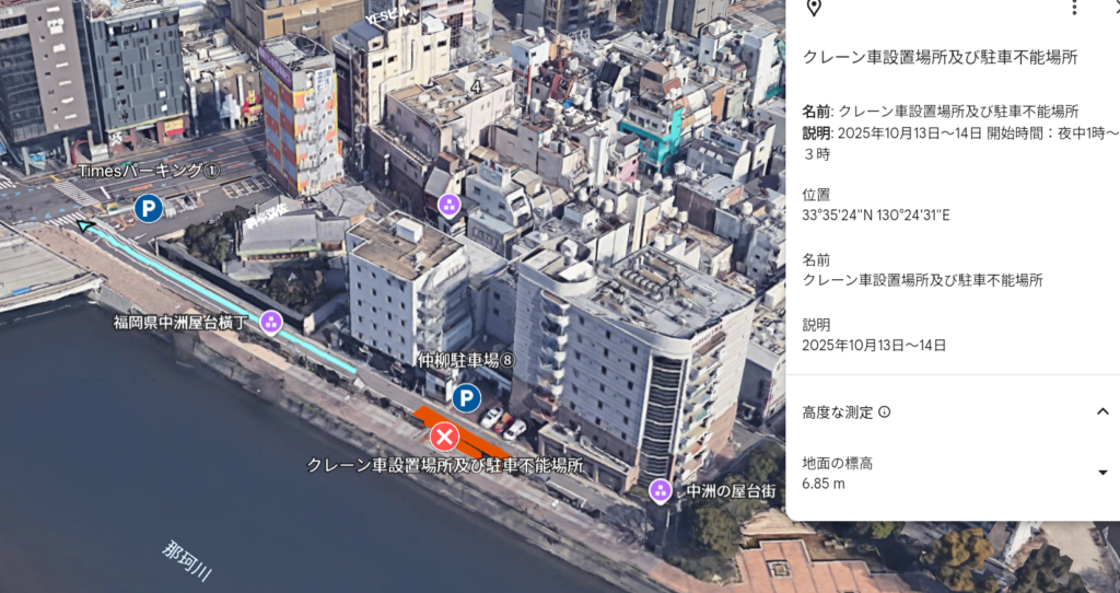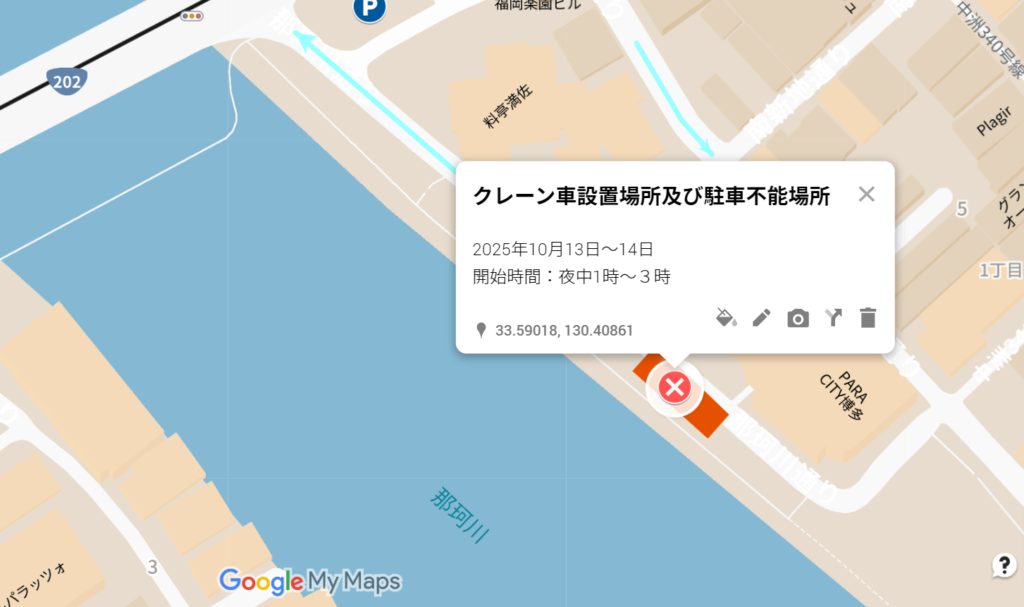 パラシティ博多ビル周辺道路(那珂川沿い)にて工事の為、
